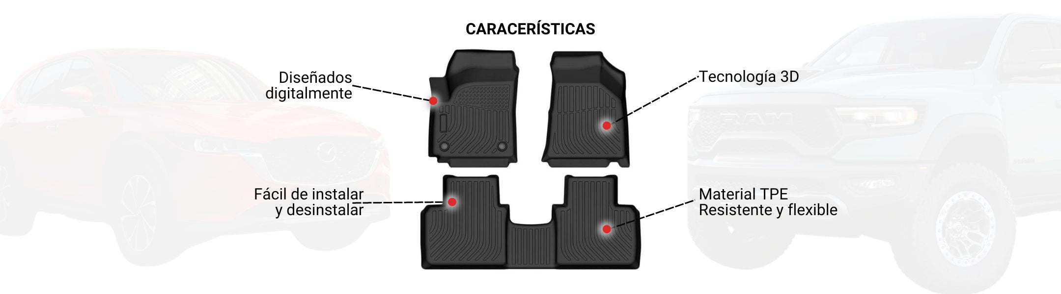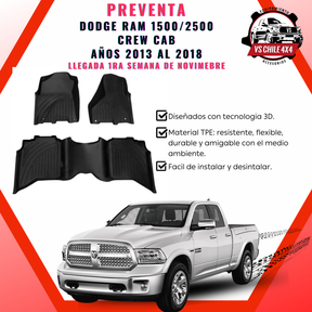 Dale a tu Dodge RAM 1500 / 2500 el cuidado y estilo que merece con estos Pisos de Calce Perfecto, diseñados con tecnología de escaneo 3D para ajustarse como originales de fábrica.